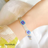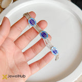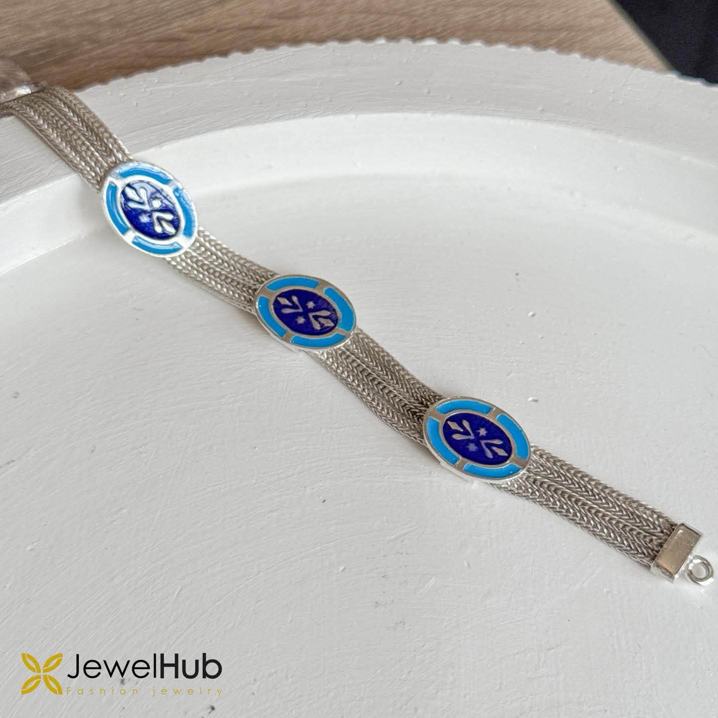 سوار زهرة اللازورد مصنوع بخبرة من الفضة الاسترليني، وهو ينضح بالأناقة والرقي. تعرض كل زهرة رقيقة جودة الفضة، مما يخلق قطعة خالدة من شأنها أن ترفع مستوى أي ملابس. مثالي لأي مناسبة، هذا السوار ضروري لأي مجموعة مجوهرات.