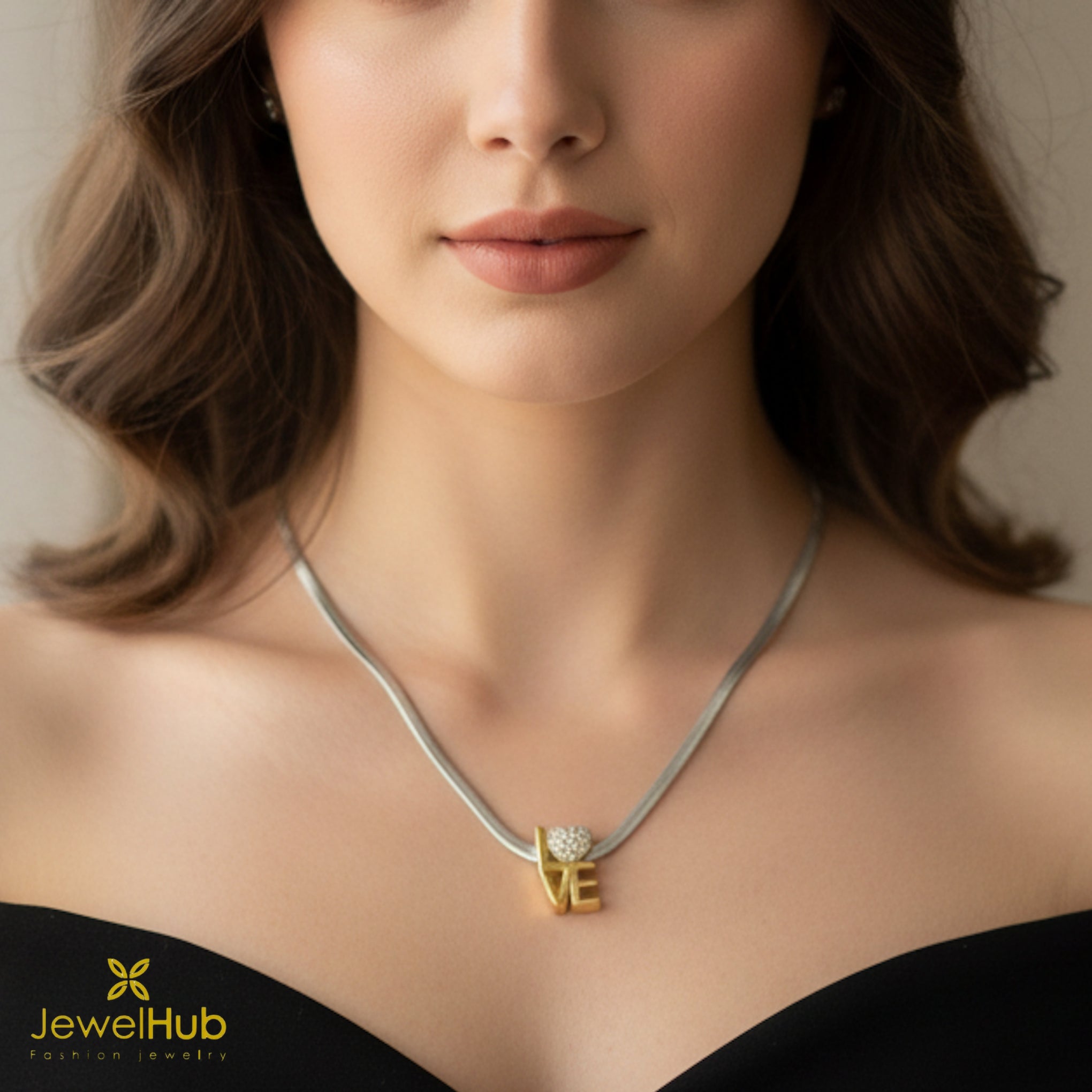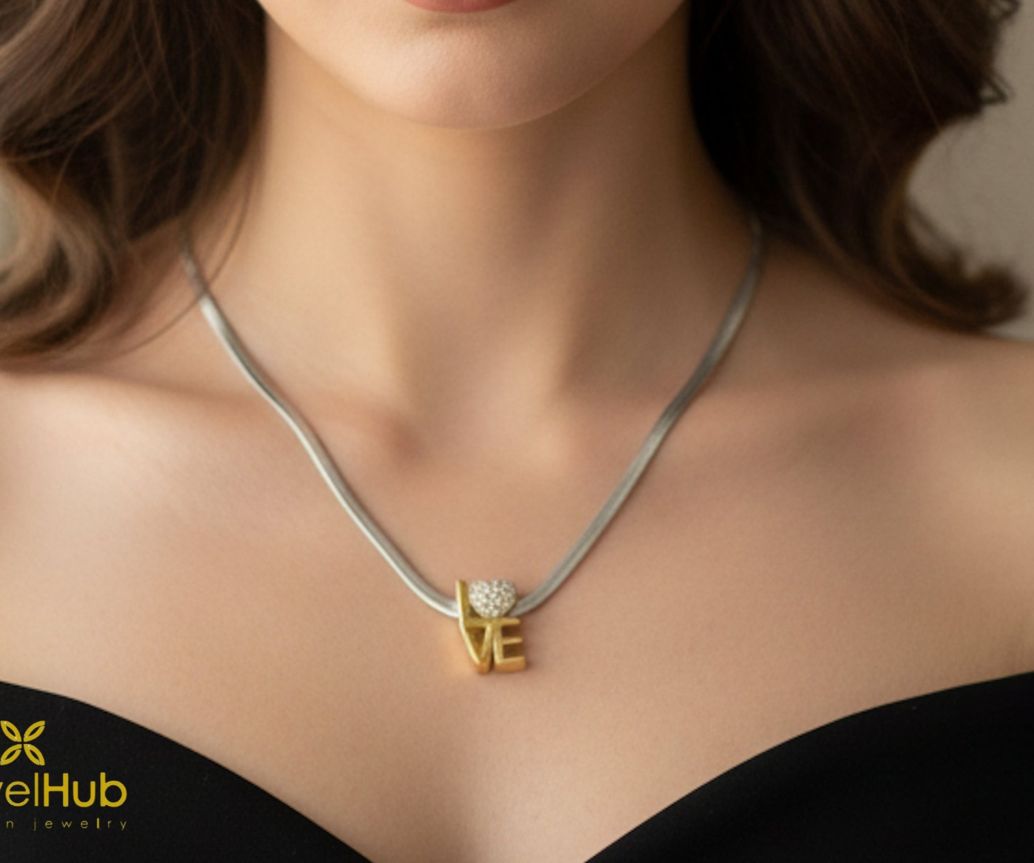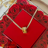 قلادة أنيقة مطلية بالذهب مع تعليقة “LOVE” تتميز بتصميم قلب متألق. تضيف سلسلة الثعبان الأنيقة لمسة من الرقي - مثالية للإهداء أو للارتداء اليومي.