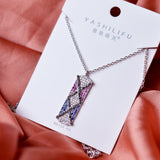 Embrace modern elegance with this refined necklace that blends simplicity and sparkle. The rectangular pendant is adorned with shimmering stones in shades of pink, blue, and silver, forming a chic geometric pattern that reflects individuality and confidence. Suspended from a delicate chain, it adds a soft feminine touch—perfect for both everyday wear and special occasions.