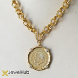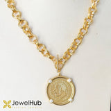 The King George Sovereign Necklace elegantly combines historical prestige with refined craftsmanship. Featuring a meticulously crafted sovereign coin pendant inspired by the iconic King George design, this necklace offers both timeless style and a symbol of heritage. Perfect for connoisseurs of classic jewelry, its durable chain ensures lasting wearability while showcasing a distinguished, regal presence suitable for both formal occasions and everyday sophistication.