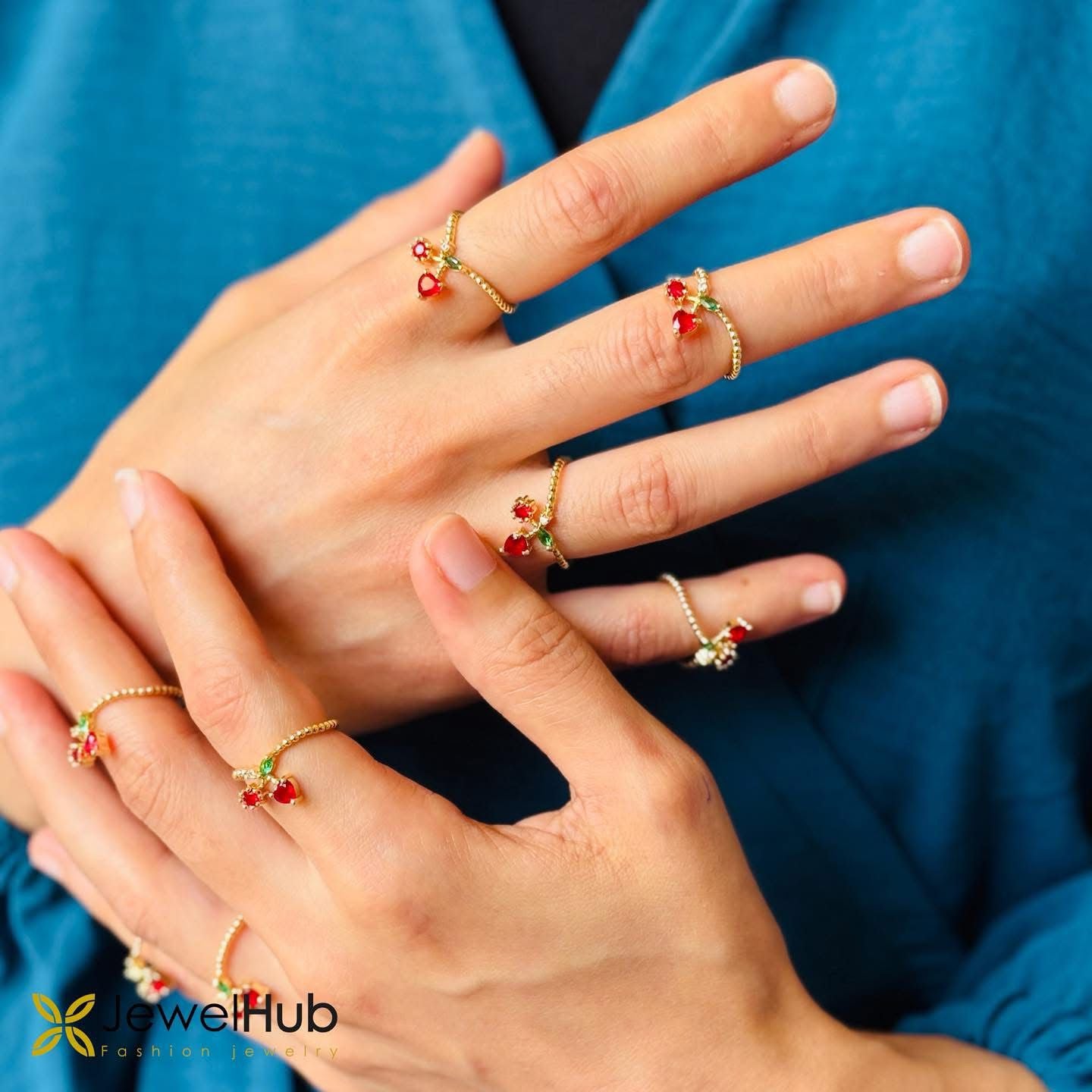 تم تصنيع خاتم الكرز بخبرة من الفولاذ المقاوم للصدأ المتين، ويتميز بطول العمر ولمسة نهائية مصقولة. مثالية للارتداء اليومي، تضيف هذه القطعة البسيطة لمسة من اللمعان إلى أي ملابس. مصنوع بدقة وخبرة، وهو إكسسوار يجب اقتناؤه لأي فرد مواكب للموضة.