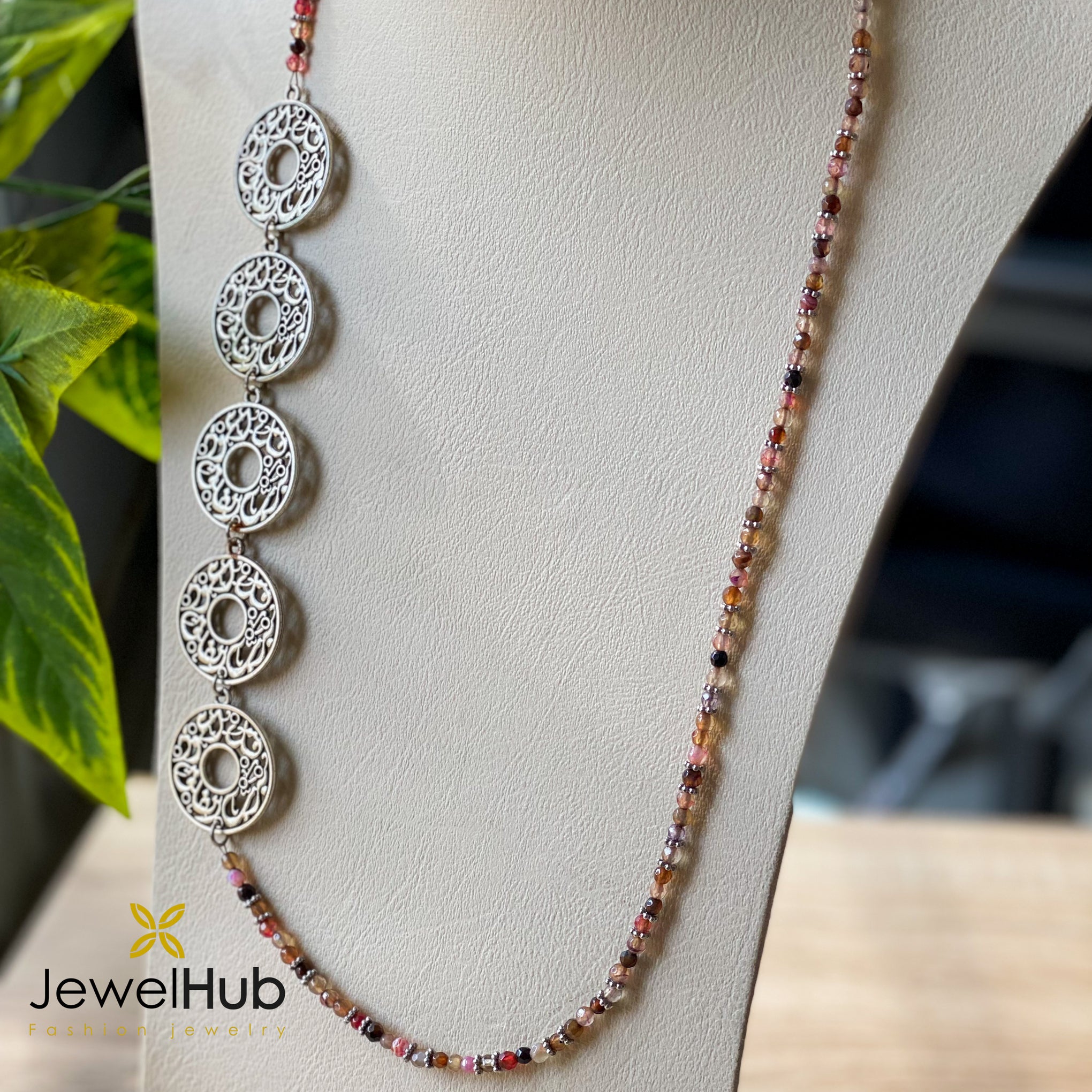 ارفع مجموعتك من خلال هذه المعلقات العربية الخمس الملونة النابضة بالحياة، والتي تعرض كل منها بشكل فريد الجمال الطبيعي لأحجار العقيق. صُنعت هذه القلادات بخبرة لتسليط الضوء على ألوانها المميزة، وتجمع بين التصميم العربي التقليدي وجاذبية العقيق الخالدة. مثالي لأولئك الذين يبحثون عن إكسسوار متطور يمزج بين التراث الثقافي والأناقة الطبيعية.