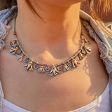 مع تصميم مذهل مستوحى من الفن الفرعوني المصري القديم، فإن قلادة زهور اللوتس الفضية الخاصة بنا هي حقًا قطعة فريدة وجميلة. مصنوع من الفضة عيار 925 عالي الجودة، وهو هدية مثالية لأي مناسبة. ارتقي بأي زي مع هذه القلادة الأنيقة والخالدة.