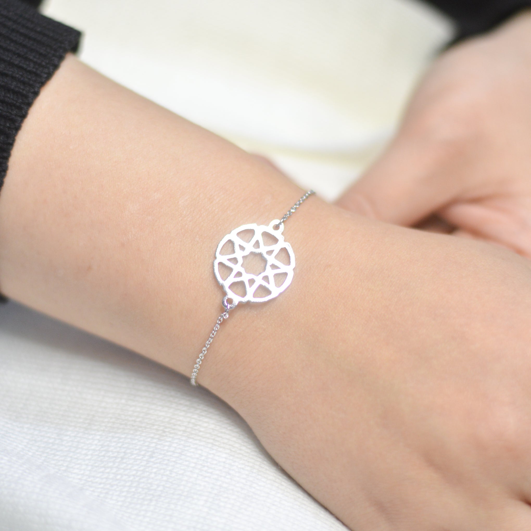 سوار زهرة الحياة الفضي مصنوع بدقة، ويمزج بين الرمزية الخالدة والتصميم الأنيق. تتميز هذه القطعة بزخارف زهرة الحياة الأيقونية، التي تمثل الانسجام والترابط، وهي مصنوعة من الفضة الإسترلينية لأناقة دائمة. مثالي لأولئك الذين يبحثون عن إكسسوار ذو معنى، فهو يكمل الملابس الكاجوال والرسمية مع توفير بيان دقيق للتوازن والوحدة. هذا السوار متين وذو لمسة نهائية دقيقة، وهو إضافة راقية لأي مجموعة مجوهرات.