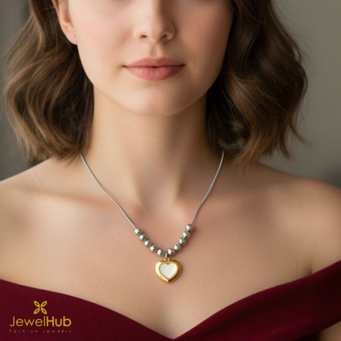 تتميز هذه القلادة ذات القلادة على شكل قلب بحلية رقيقة على شكل قلب مصنوعة من الفضة ومطلية بطلاء ذهبي. يوفر تصميمه الأنيق أناقة خالدة، مما يجعله إكسسوارًا متعدد الاستخدامات مناسبًا للارتداء اليومي والمناسبات الخاصة. يضيف الطلاء الذهبي لمعانًا فاخرًا مع ضمان المتانة، مما يؤدي إلى قطعة تجمع بين الطراز الكلاسيكي والجودة الدائمة.