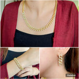 أضف بريقًا جريئًا إلى مظهرك مع مجموعة Wide Curb CZ المطلية بالذهب. يتميز هذا الثلاثي المرح بقلادة وسوار وأقراط جميعها لامعة بالزركونيا المكعبة، مما يضفي لمسة براقة على أي ملابس. مثالية لجذب الأنظار وإضافة لمسة ممتعة إلى أسلوبك اليومي!