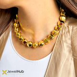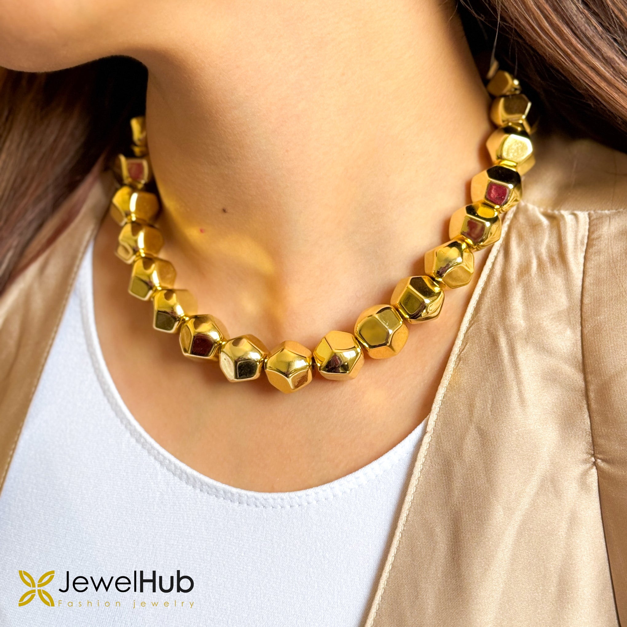 Elevate your jewelry collection with this sophisticated Gold Cube Set, featuring a harmonious pairing of necklace and bracelet. Each piece showcases meticulously crafted geometric cube elements that catch light beautifully, creating dimensional sparkle with every movement. The expert construction ensures durability and lasting brilliance, while the timeless cube design transcends seasonal trends. Perfect for layering or wearing individually, this set offers versatile styling for both everyday elegance and special occasions. A refined investment in quality jewelry that complements any wardrobe with understated luxury.