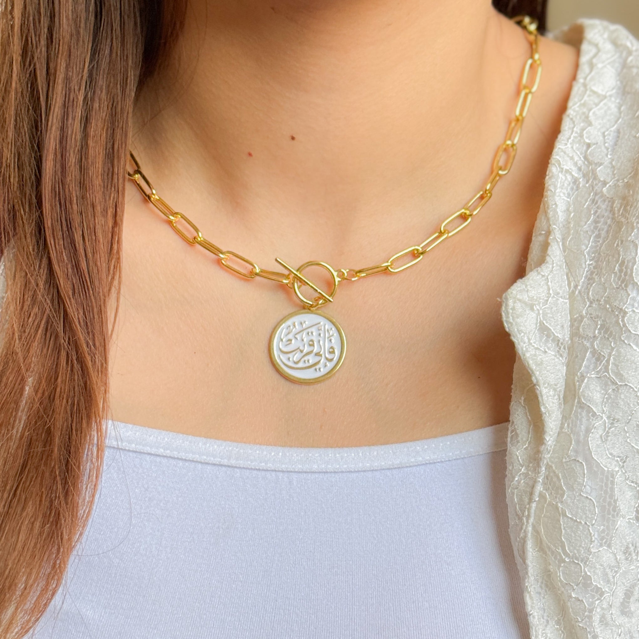 قلادة فاني قريب هذه مصنوعة من الفولاذ المقاوم للصدأ المتين، مما يضمن قطعة لامعة تدوم طويلاً. خامتها القوية تسمح بارتدائها يوميًا، مما يجعلها إضافة مثالية لمجموعة مجوهراتك. استمتع بتصميمه الأنيق والعصري، المثالي لأي ملابس أو مناسبة.