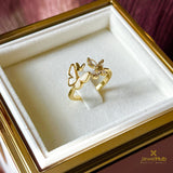 White & Spark Butterfly Ring Delicate butterfly silhouette meets radiant sparkle in this refined ring design. Crafted with precision, the white metal band showcases an intricately detailed butterfly motif adorned with brilliant gemstone accents that catch light from every angle. Perfect for those who appreciate nature-inspired elegance with a contemporary edge. This versatile piece transitions seamlessly from everyday wear to special occasions, making it an essential addition to any jewelry collection.