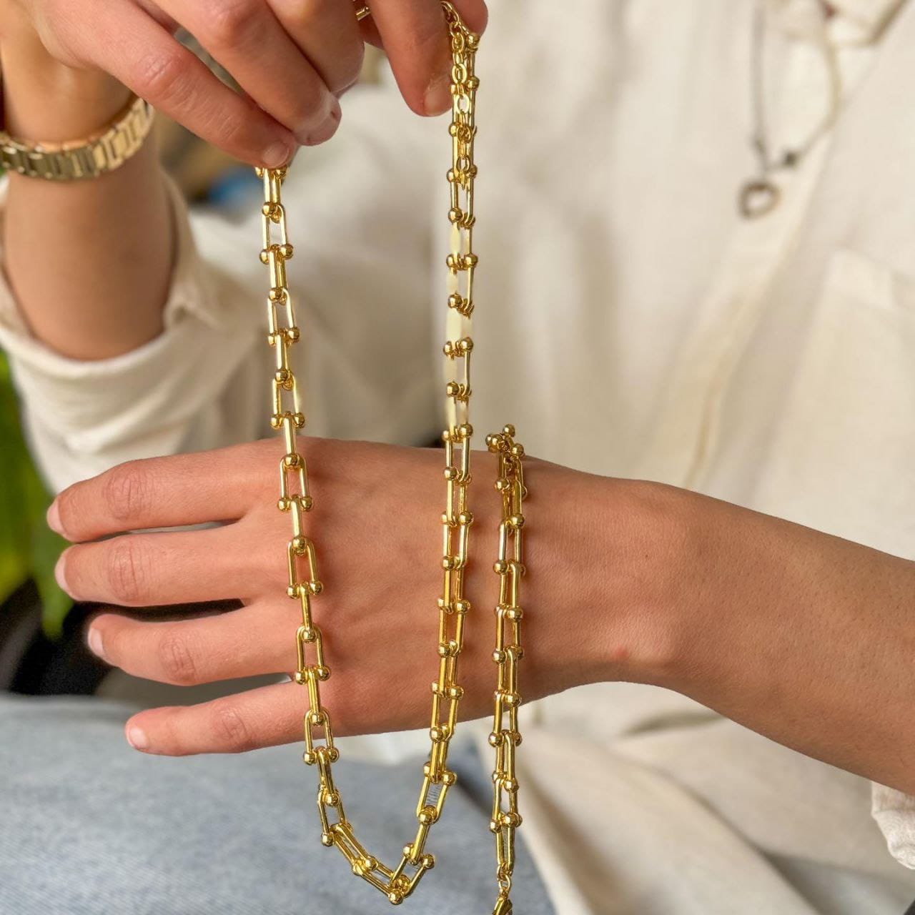Elevate your look with the Tiffany U-Link Set, featuring a matching bracelet and necklace in the iconic U-link design. Each piece radiates modern elegance and effortless sophistication perfect for day or night.