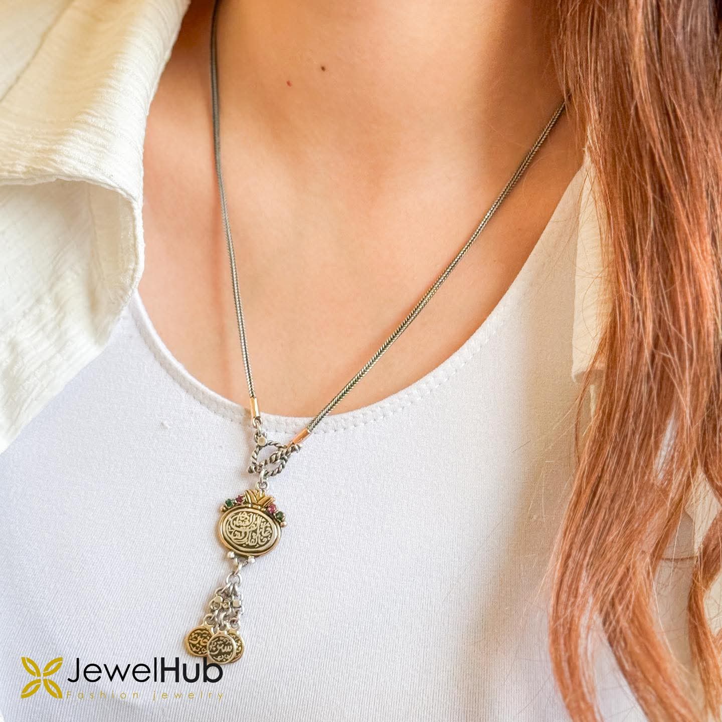 Crafted with a stunning فما تألف العينان فالقلب آلف (Fama taa'allaful 'aynana fa'lkhalb alf) inscription, this Silver Necklace is a beautiful piece that symbolizes love and unity. Made of high-quality silver, it makes for a timeless and elegant addition to any jewelry collection.