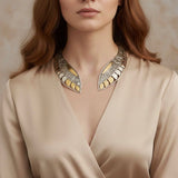 Nile Wings Necklace Inspired by the graceful flight of birds along Egypt's legendary river, this necklace captures the essence of freedom and natural elegance. Crafted with meticulous attention to detail, the wing-motif pendant showcases premium materials and refined artistry. The flowing design drapes beautifully against the collarbone, making it an ideal statement piece for those who appreciate symbolic jewelry with cultural resonance. Perfect for layering or wearing solo, this necklace transitions seamlessly from day to evening wear, adding a touch of sophistication to any ensemble.