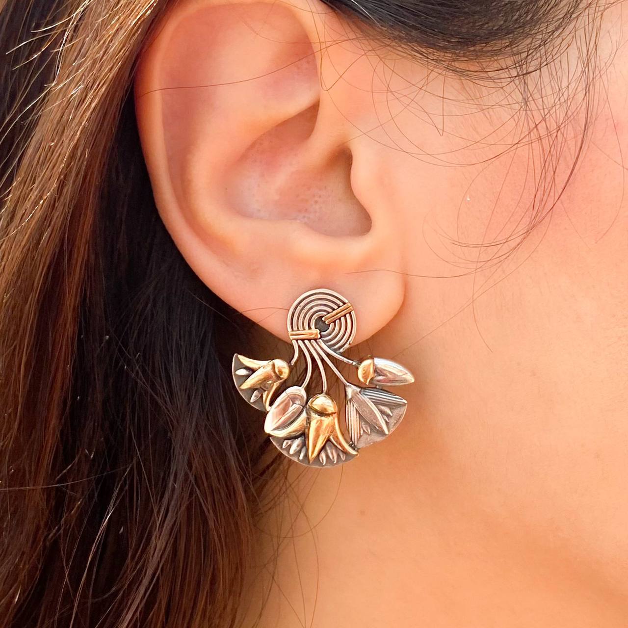 Bouquet of Lotus Flowers Silver Earring