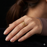 Wave Layer Ring Sculptural elegance meets modern minimalism in this striking layered ring. Crafted with precision, the wave design creates dynamic dimension on the finger, catching light with every movement. The stacked layers offer a contemporary take on classic jewelry craftsmanship, perfect for those who appreciate architectural detail and refined aesthetics. Versatile enough for everyday wear yet distinctive enough to make a statement, this piece seamlessly transitions from day to evening